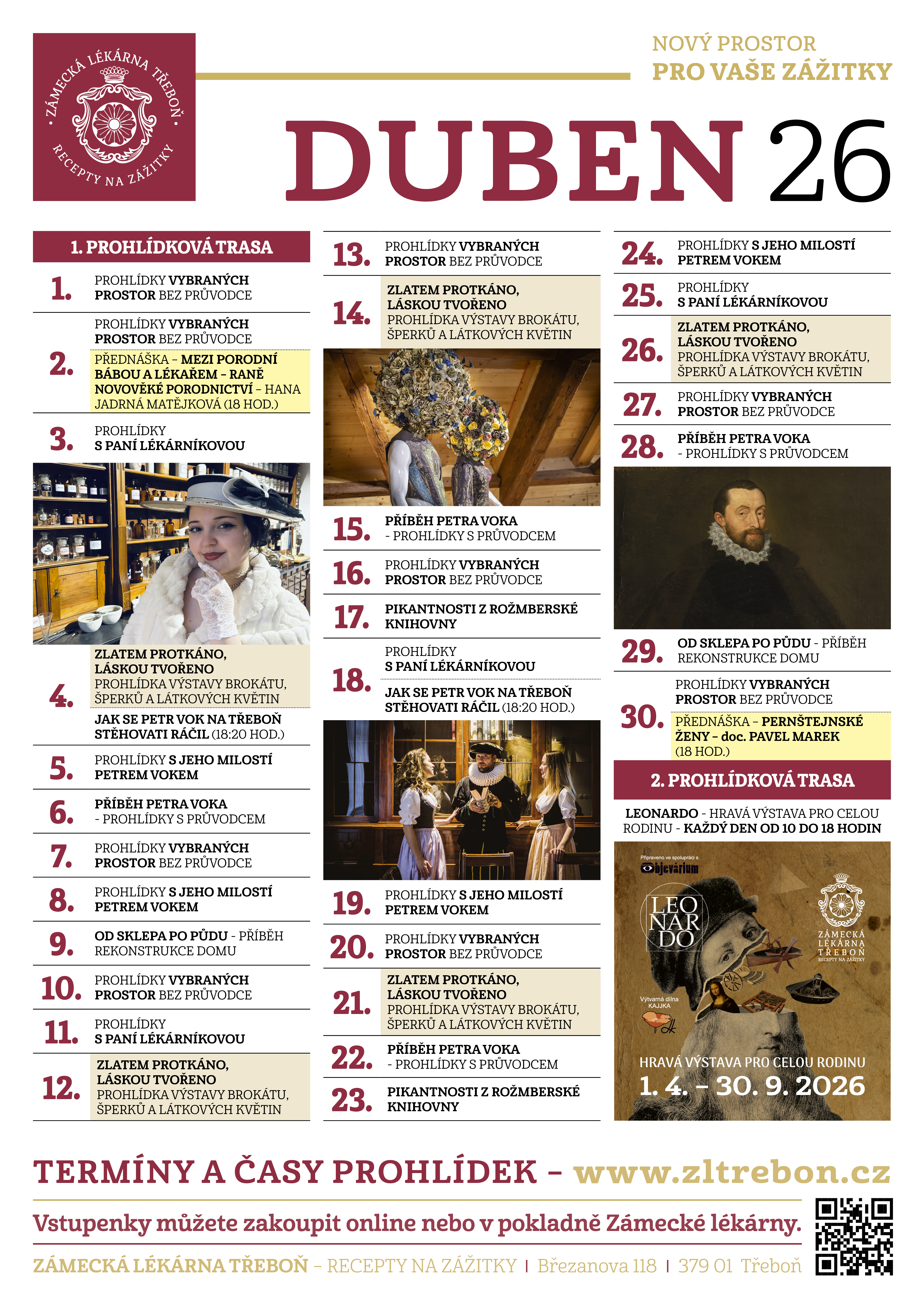DOSTUPNOST VSTUPENEK A ZAČÁTKY PROHLÍDEK SI OVĚŘTE ROZKLIKNUTÍM JEDNOTLIVÝCH PROHLÍDEK.
